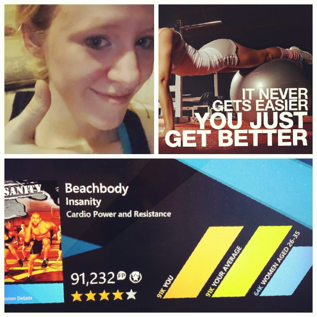 Today I completed Day 5 of the Insanity program. Oh boy, I was sweating all over the place. Today’s workout was Pure Cardio. It definitely was a lot of cardio. There were times where I did have to take a wee break to drink some water and to catch my breath a little. Anyway, I still pushed myself through some of the harder exercises even when I thought I couldn’t go any longer. Those pushup jacks at the end were killer! I also did the entire workout on X-box One’s fitness app. I beat the score for women in my age range! Woo!